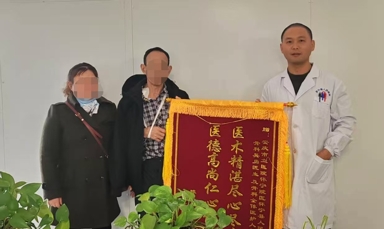 “从入院时的剧痛不安,到出院时的活动自如,我真切感受到了怀宁县人民医院医护团队的专业和温暖。”送来锦旗时,患者感慨地说,“感谢医生们精湛的技术为我解决了病痛,也感谢护士们耐心地照顾和鼓励,你们不仅治好了我的伤,更给了我康复的信心!”