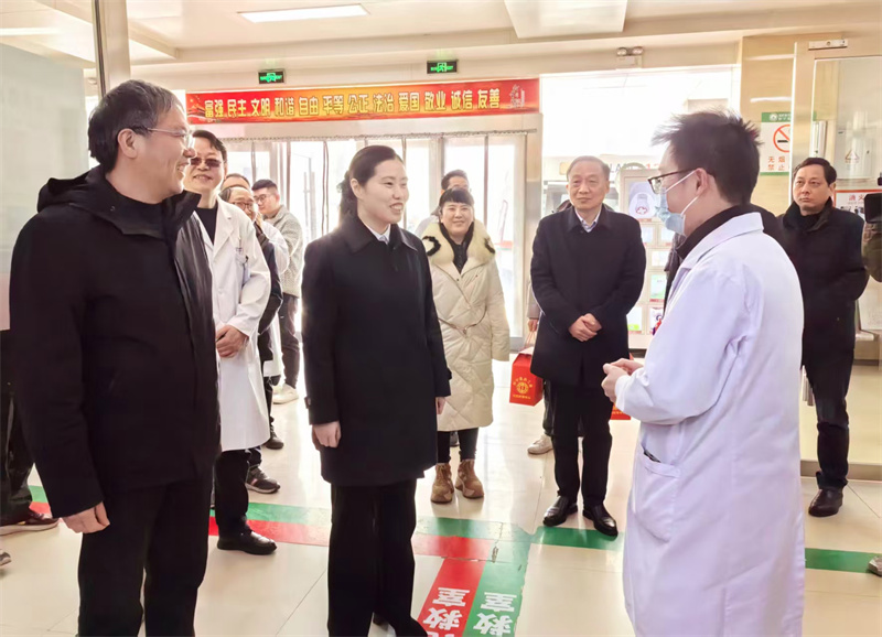 慰问中,项薇详细了解县医院在新院区搬迁、人才建设、技术创新等方面的工作进展。她指出,县医院作为全县医疗卫生事业的龙头单位,在医疗救治、学科建设等方面发挥了重要作用,特别是在过去一年里,全体医务人员用辛勤付出守护了万家灯火,为保障全县人民群众的身体健康做出了积极贡献。她强调,春节期间是群众就医需求的高峰期,医院要进一步加强医疗质量管理,优化服务流程,合理安排值班值守,确保每一位患者都能得到及时、有效的诊疗服务,让全县人民度过一个欢乐、祥和、健康的春节。
