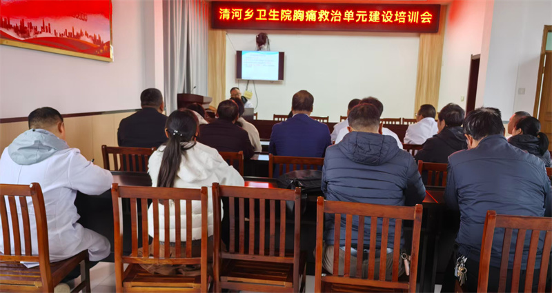 义诊结束后,交流互动环节在卫生院会议室举行。心内科主任刘体厚围绕《高危胸痛识别及转运》进行专题培训,结合实际案例讲解了胸痛的早期识别、应急处置和规范转诊流程。内科支部书记、神经内科主任杨吉祥则就《胸痛救治单元建设要点》进行讲解,并为卫生院相关科室提供现场指导,帮助基层医务人员更好地理解和推进胸痛救治单元的建设工作。